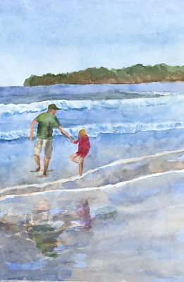 This is a scene from a Northern California beach. I had the photo and found it conveyed the sense of a special time. It was fun to do and I tried to keep it "loose."